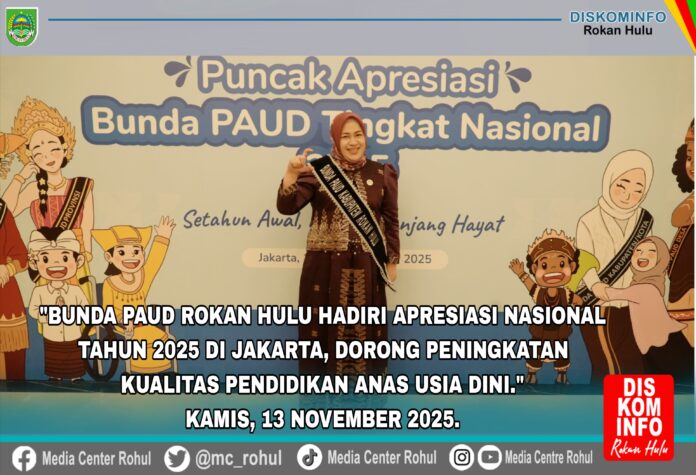 ROKAN HULU – Kegiatan Apresiasi Bunda PAUD Tingkat Nasional Tahun 2025 berlangsung penuh semangat di The Sultan Hotel and Residence Jakarta, Kota Jakarta Pusat, Kamis (13/11/2025).
