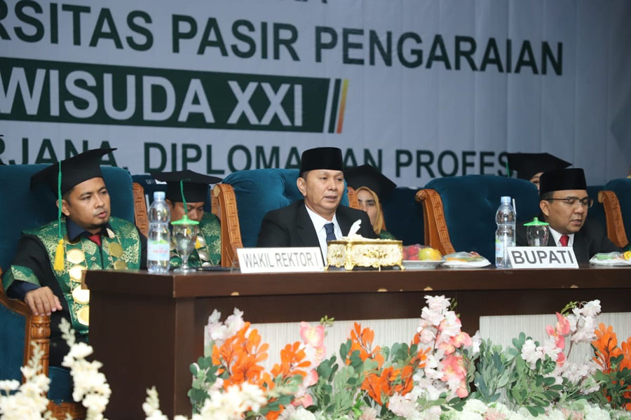 “Kami juga merasa bangga melihat perkembangan pendidikan di wilayah kita. Universitas Pasir Pengaraian telah memainkan peranan yang sangat penting dalam mencerdaskan kehidupan bangsa dan mencetak generasi muda yang berkualitas. Kami ingin menyampaikan apresiasi dan terima kasih kepada seluruh jajaran universitas, terutama kepada Rektor dan para dosen serta tenaga kependidikan yang telah memberikan dedikasi serta bimbingan yang luar biasa kepada para mahasiswa,” ucap Wabup.