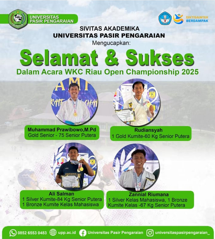 Empat atlit UPP yang berhasil mearih medali pada Ajang WKC Riau Open championship 2025 diantaranya, Muhammad Prawibowo berhasil meraih Gold Senior Putra, Rudiansyah berhasil meraih 1 Gold Kumite 60 Kg Senior Putra, Ali Salman berhasil meraih 1 Silver Kumite 84 Kg Senior Putra dan 1 Bronze Kumite Kelas Mahasiswa, serta Zannial Riumana berhasil meraih 1 Silver Kelas Mahasiswa, 1 Bronze Kumite Kelas Mahasiswa.