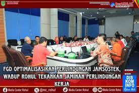 ROKAN HULU – Focus Group Discussion (FGD) optimalisasi perlindungan jaminan sosial ketenagakerjaan bagi pekerja sektor jasa konstruksi di Kabupaten Rokan Hulu dibuka oleh Wakil Bupati Rokan Hulu H. Syafaruddin Poti, SH, MM di Ruang Rapat Lantai III Kantor Bupati Rokan Hulu, Kamis (19/06/2025).