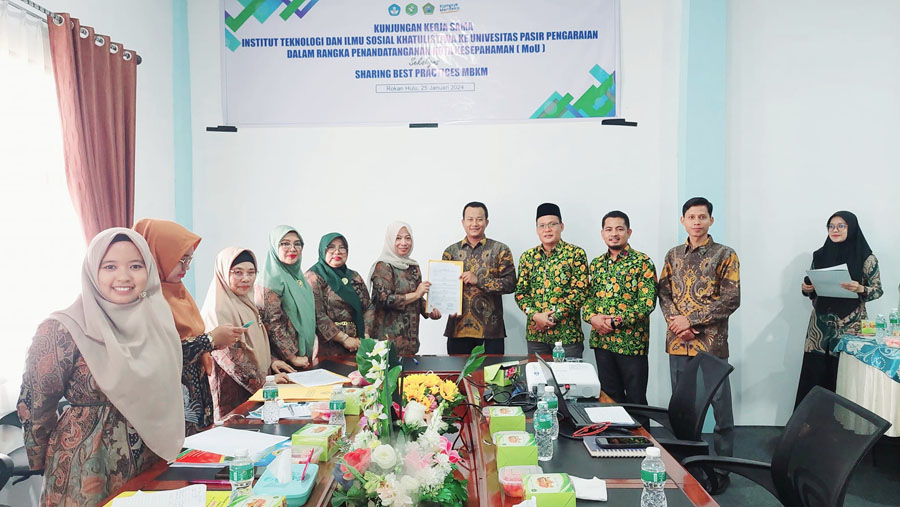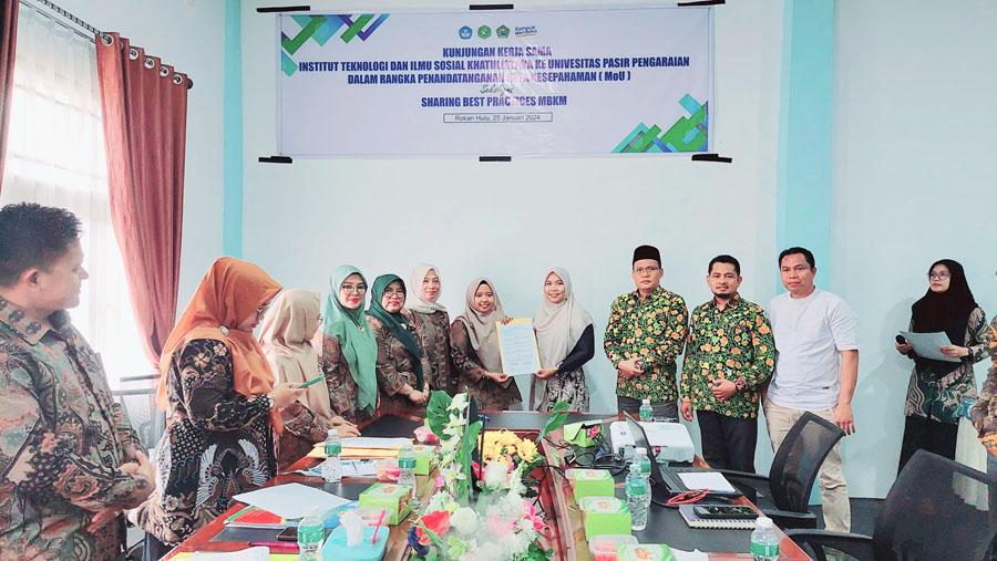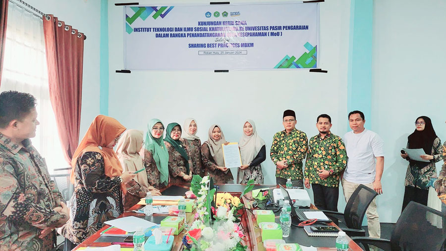 PASIRPENGARAIAN – Universitas Pasir Pengaraian (UPP) Kabupaten Rokan Hulu (Rohul), Provinsi Riau menerima kunjungan kerjasama dari Institut Teknologi dan Ilmu Sosial (ITS) Khatulistiwa, Kabupaten Pasaman, Provinsi Sumatera Barat pada Kamis (25/01/2024).