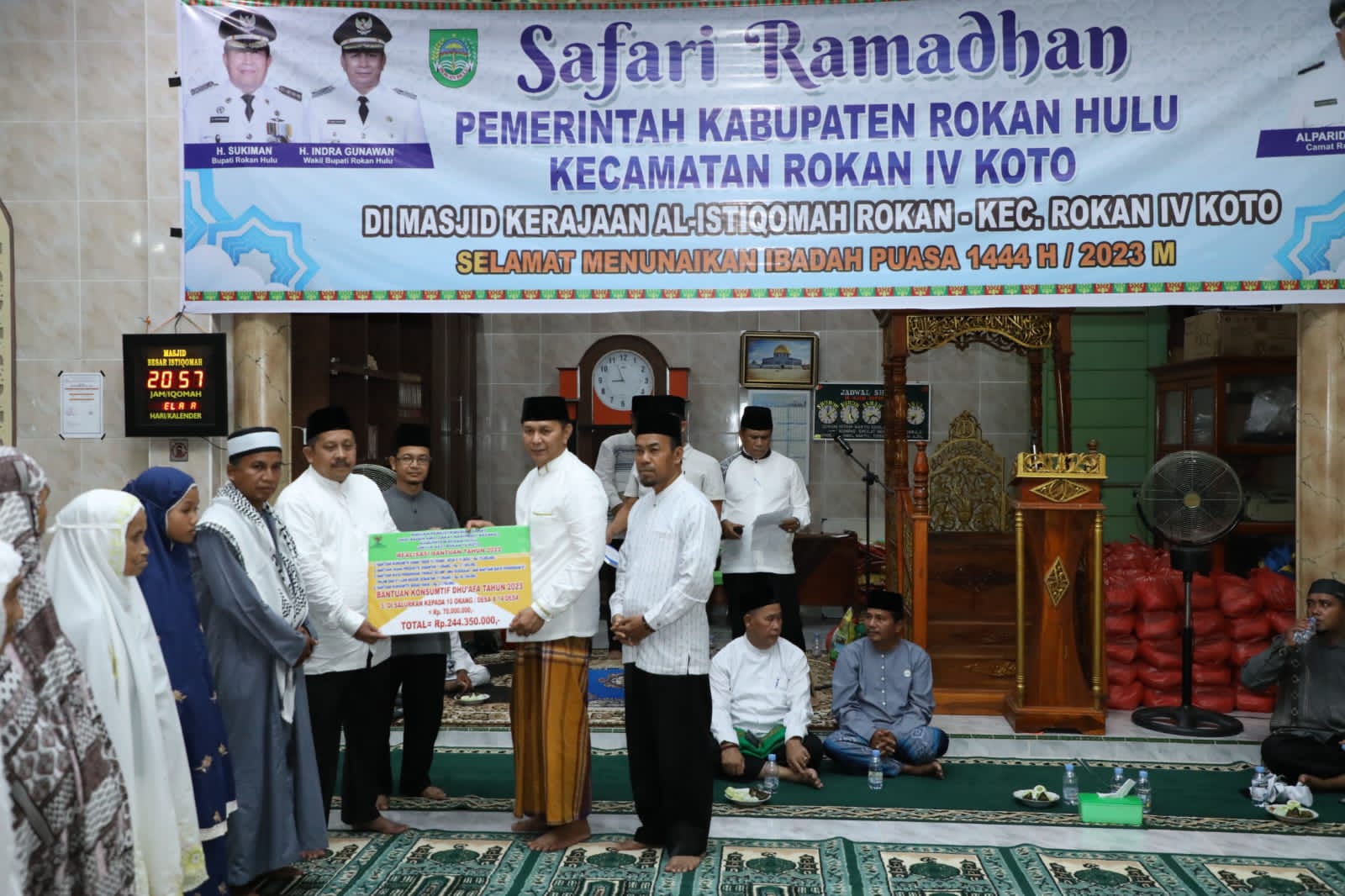 Pada kunjungan Safari Ramadhan Pemda Rohul ke Kecamatan Rokan IV Koto di Masjid Besar Al Istiqomah membawa bantuan dari BAZNAS Rohul dengan total Rp. 244.350.000, realisasi bantuan tahun 2022 dengan rincian berupa Bantuan Konsumtif Asnaf Fakir 10 Orang Perdesa dikali 14 Desa Se Kecamatan Rokan IV Koto dengan total 70 juta Rupiah, Bantuan Usaha Produktif 5 Orang dengan Nilai 27.500.000, Bantuan Biaya Pendidikan, SD,SMP,SMA dan S1 dalam dan luar Negeri sebanyak 31 orang dengan total 49.150.000, bantuan Konsumtif Beras Fakir total Rp.27.700.000. serta bantuan Konsumtif dhuafa untuk tahun 2023 kepada 10 orang per Desa kali 14 Desa dengan Total 70 Juta Rupiah.
