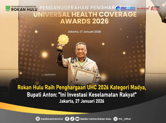 JAKARTA – Kabupaten Rokan Hulu (Rohul) kembali menorehkan prestasi membanggakan di tingkat nasional. Di bawah kepemimpinan Bupati Anton, ST, MM, Negeri Seribu Suluk resmi meraih Penghargaan Universal Health Coverage (UHC) Tahun 2026 dengan predikat Kategori Madya.