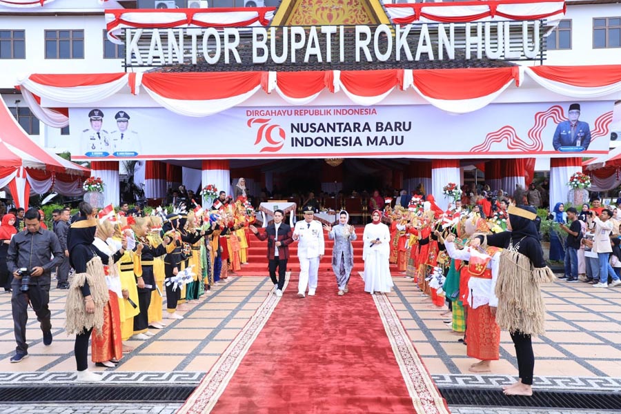 Rohul – Memperingati Hari Ulang Tahun (HUT) Republik Indonesia (RI) ke 79, Pemerintah Kabupaten Rokan Hulu(Rohul) menggelar Upacara di Halaman Kantor Bupati, Sabtu (17/8/2024) dengan mengangkat Tema Nusantara Baru Indonesia Maju.