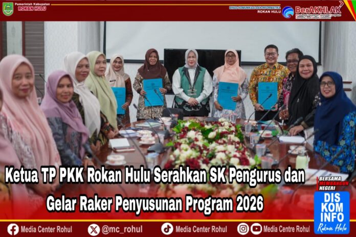 ROKAN HULU – Tim Penggerak Pemberdayaan Kesejahteraan Keluarga (TP PKK) Kabupaten Rokan Hulu (Rohul) melaksanakan kegiatan penting berupa penyerahan Surat Keputusan (SK) Pengurus dan dilanjutkan dengan Rapat Kerja (Raker) penyusunan program kerja untuk tahun 2026.