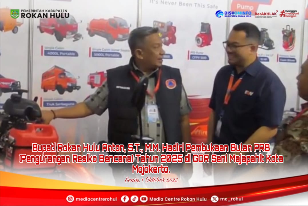 ROKAN HULU – Peringatan Bulan Pengurangan Risiko Bencana (PRB) Tahun 2025 resmi dibuka oleh Sekretaris Utama (Sestama) Badan Nasional Penanggulangan Bencana (BNPB), Dr. Rustian, bersama Wali Kota Mojokerto Ika Puspitasari dan perwakilan Komisi VIII DPR RI di GOR Seni Majapahit, Kota Mojokerto, Rabu (1/10/2025).