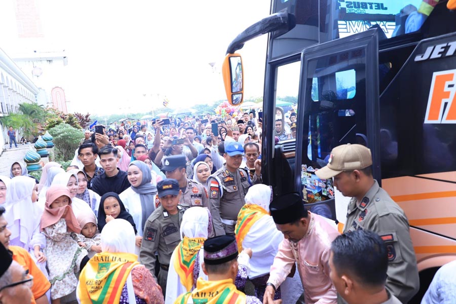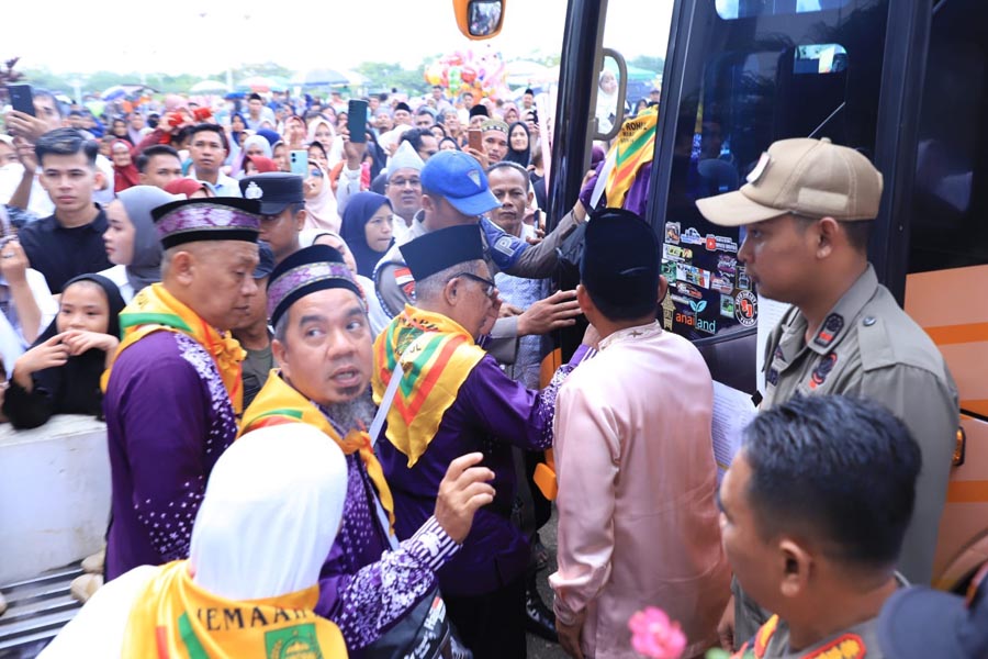 ROHUL – 470 Jamaah Calon Haji (JCH) Kabupaten Rokan Hulu yang tergabung dalam Kloter 8 (delapan) setelah diistirahatkan sejenak di Embarkasi Haji Batam, secara resmi dilepas Keberangkatannya menuju Madinah oleh Bupati Rokan Hulu (Rohul) H. Sukiman, Senin (20/5/2024) dinihari.
