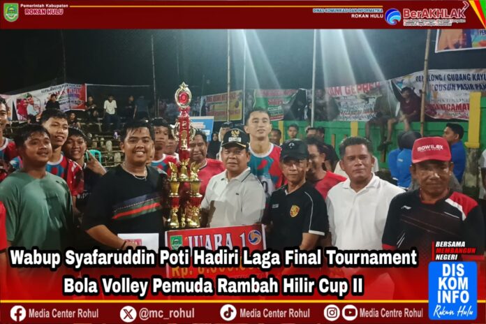 ROKAN HULU – Wakil Bupati Rokan Hulu (Rohul) H. Syafaruddin Poti, S.H, MM hadiri laga final dan tutup secara resmi Semi Open Tournament Volley Ball Pemuda Rambah Hilir Cup II, Lapangan Pasir Panjang, Minggu (28/09/2025).