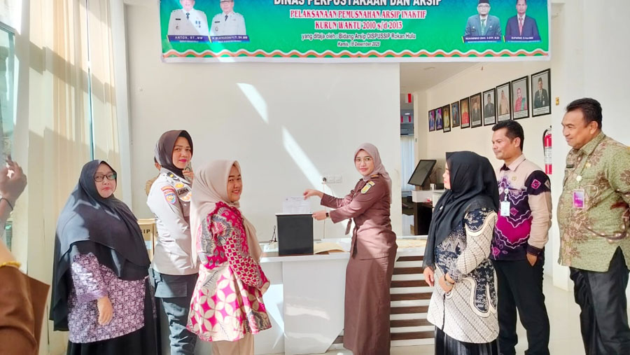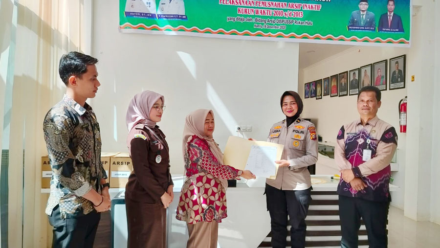 ROKAN HULU – Pemerintah Kabupaten Rokan Hulu melalui Dinas Perpustakaan dan Arsip (Dispussip) melaksanakan pemusnahan arsip inaktif periode tahun 2010 hingga 2013. Kegiatan yang digelar oleh Bidang Arsip Dispussip Rokan Hulu tersebut berlangsung di Lobby Dispussip Rohul, Kamis (18/12/2025) pagi.